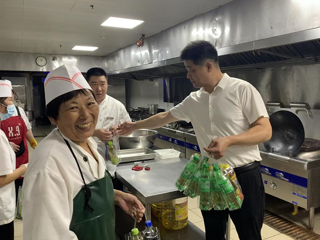 劉晉國(guó)一行為堅(jiān)守在高溫一線的職工們送上慰問(wèn)品,并察看了酒店餐飲接待服務(wù)、廚房菜肴出品、工程施工作業(yè)和康體中心安全管理等方面工作情況。每到一處,劉晉國(guó)都同一線職工親切交談,詳細(xì)了解防暑降溫和日常工作情況,對(duì)他們的愛(ài)崗敬業(yè)精神表示充分肯定,反復(fù)叮囑大家要注意勞逸結(jié)合、加強(qiáng)自我防護(hù),同時(shí)要求各部門(mén)積極創(chuàng)造條件,改善工作環(huán)境,把防暑降溫工作做細(xì)做實(shí)做到位,不斷提升職工的獲得感、幸福感和歸屬感。