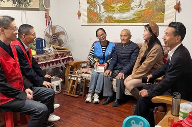 活動(dòng)中,黨員志愿者們來(lái)到桂苑社區(qū)華佳梅苑小區(qū),同社區(qū)工作人員一起為老黨員們送去精心準(zhǔn)備的食品和書(shū)籍,并與他們拉家常,傾聽(tīng)他們的心聲,關(guān)切詢(xún)問(wèn)他們的日常起居、身體健康情況,并叮囑老人們?cè)趽Q季時(shí)節(jié)注意天氣變化,及時(shí)增添衣物,保重身體、安度晚年。一聲問(wèn)候,幾句細(xì)語(yǔ),洋溢著濃濃的情意,讓老黨員們深切感受到黨組織的關(guān)懷與溫暖。