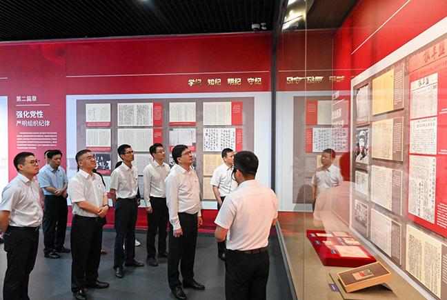 展覽透過一個(gè)個(gè)生動(dòng)的案例,圍繞“擎旗抗戰(zhàn) 嚴(yán)明政治紀(jì)律”“強(qiáng)化黨性 嚴(yán)明組織紀(jì)律”“激濁揚(yáng)清 嚴(yán)明廉潔紀(jì)律”“心系人民 嚴(yán)明群眾紀(jì)律”“建章立制 嚴(yán)明工作紀(jì)律”“立德立言 嚴(yán)明生活紀(jì)律”“所向披靡 奪取抗戰(zhàn)勝利”等七個(gè)篇章,生動(dòng)展現(xiàn)了新四軍堅(jiān)定崇高的信仰、守紀(jì)如鐵的作風(fēng)、嚴(yán)于律己的風(fēng)范、懲治腐敗的決心、親民愛民的情懷和艱苦奮斗的精神。集團(tuán)領(lǐng)導(dǎo)班子認(rèn)真聽取講解介紹,用心學(xué)習(xí)體悟,表示將嚴(yán)格對照“六項(xiàng)紀(jì)律”,在學(xué)紀(jì)知紀(jì)明紀(jì)守紀(jì)上下功夫,在以學(xué)促干上持續(xù)用勁,把深化黨紀(jì)學(xué)習(xí)教育同貫徹落實(shí)省市委全會(huì)部署要求、抓好當(dāng)前各項(xiàng)工作結(jié)合起來,以實(shí)干實(shí)績實(shí)效為鹽城高質(zhì)量發(fā)展大局多作貢獻(xiàn)。