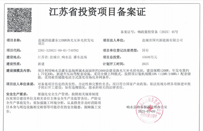 國能公司持續(xù)優(yōu)化市場布局,聚焦業(yè)務(wù)拓展,積極整合資源,緊盯優(yōu)質(zhì)項目,利用濱??h八灘鎮(zhèn)330畝坑塘水面建設(shè)漁光互補光伏電站,規(guī)劃裝機容量18MWp;與灌東鹽場公司合作,利用響水灌東鹽場約2000畝坑塘水面,開發(fā)建設(shè)120MW漁光互補光伏電站。目前2個項目已取得投資備案證,進入省發(fā)改委光伏發(fā)電項目實施庫,正在積極推進項目前期各項工作,預(yù)計今年年底開工建設(shè)。